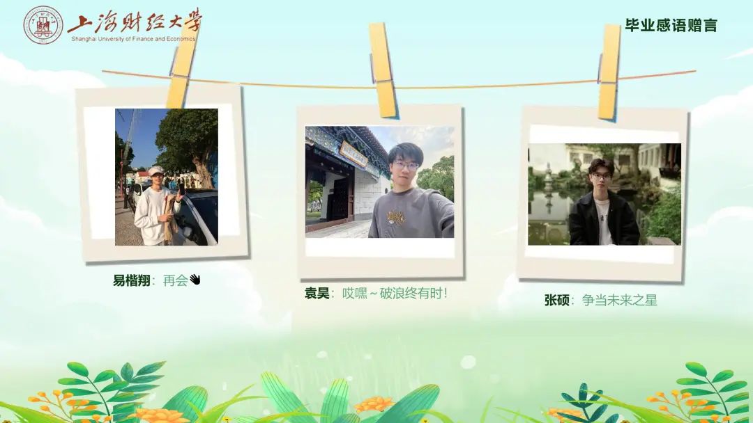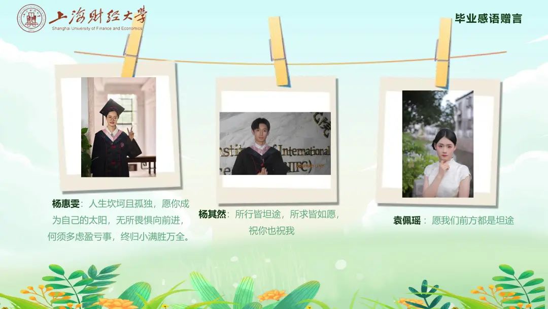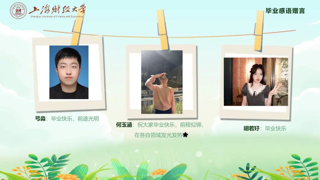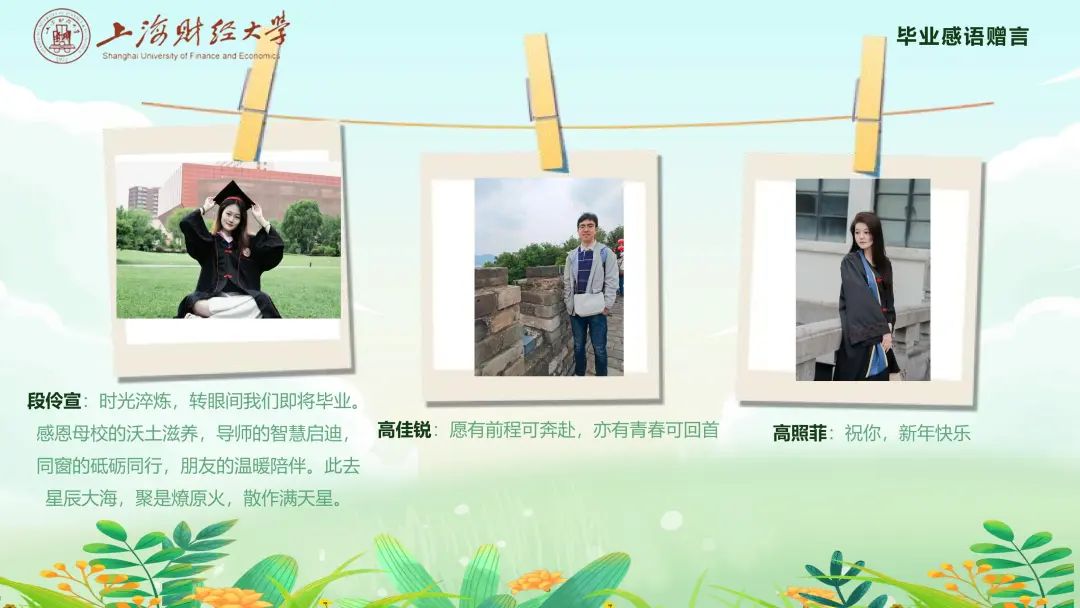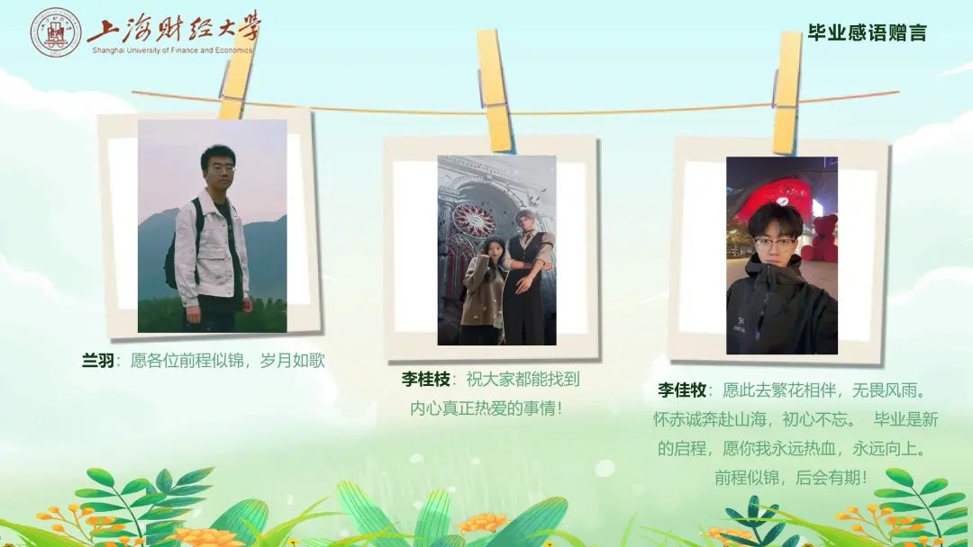 锦瑟年华灵毓秀,不负韶光不负己。祝愿2025届金融学子在强国追梦的新时代里,在未来无限的人生舞台上,继承和发扬“厚德博学,经济匡时”的校训精神,展现上财金融人的情怀和担当,以新时代追梦人的姿态和干劲,坚守理想初心,矢志砥砺奋斗,让青春在拼搏中熠熠发光,奋力书写为中国式现代化挺膺担当的青春篇章!祝福大家前程似锦,未来可期!