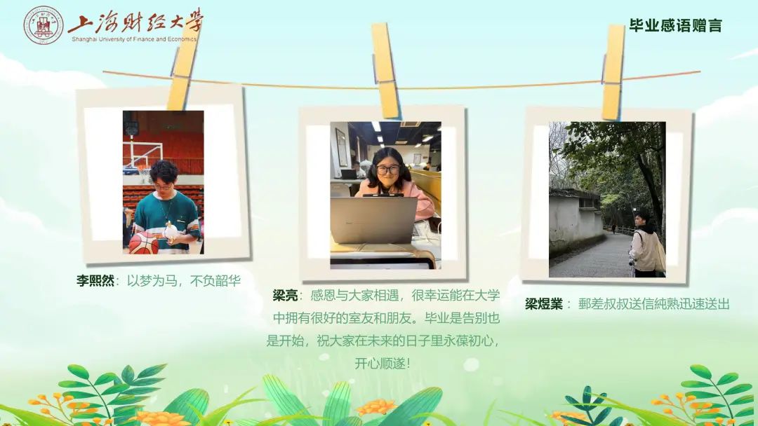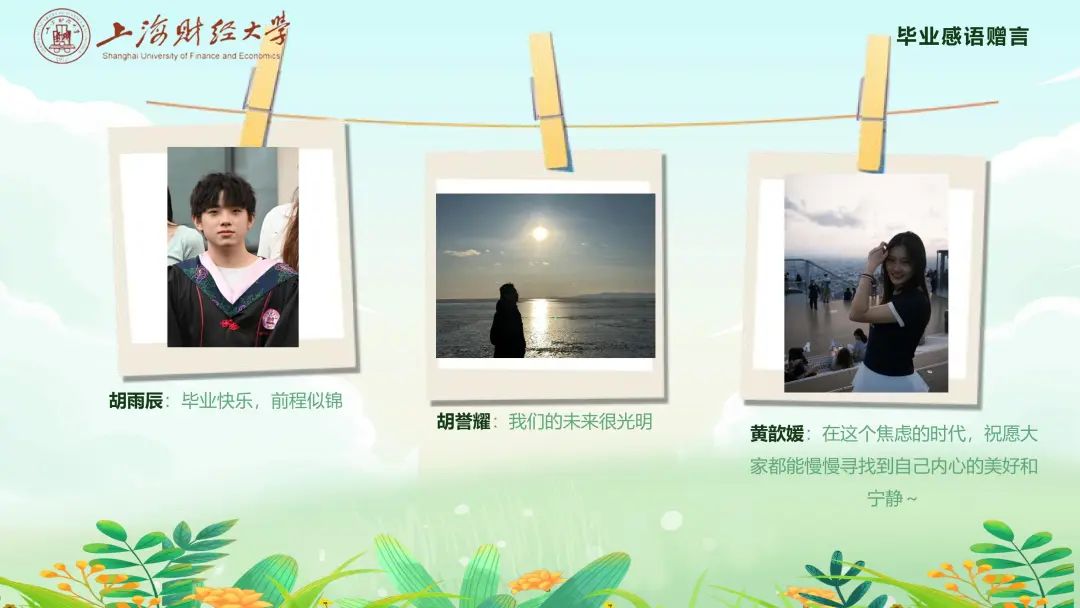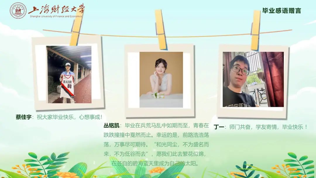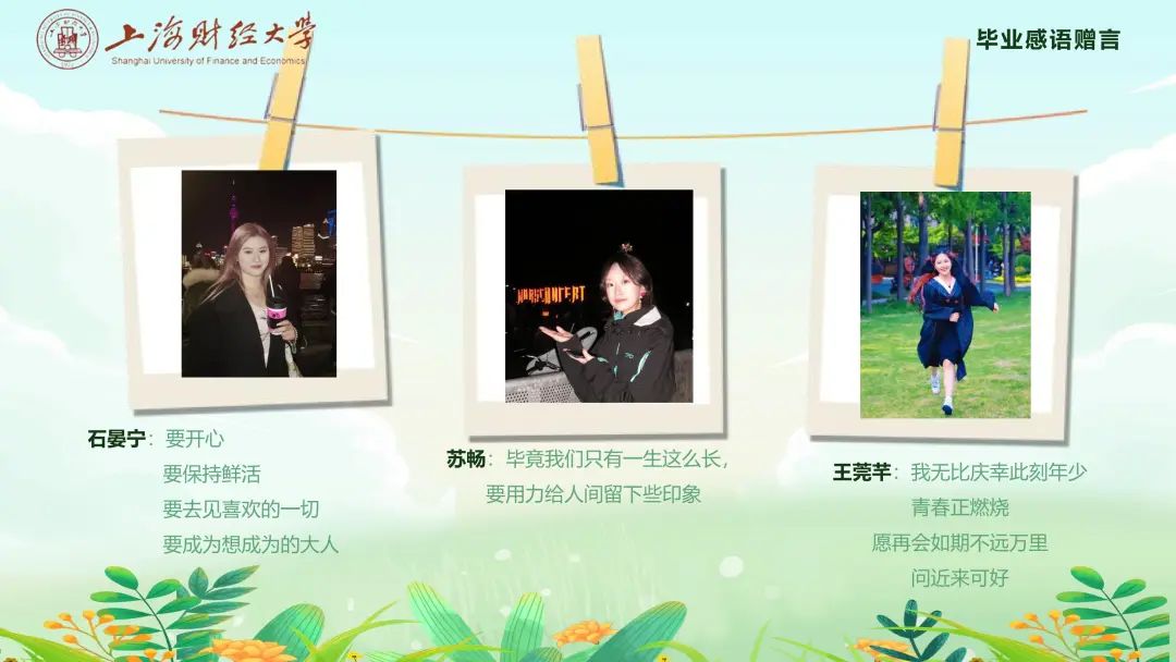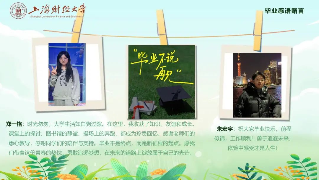 锦瑟年华灵毓秀,不负韶光不负己。祝愿2025届金融学子在强国追梦的新时代里,在未来无限的人生舞台上,继承和发扬“厚德博学,经济匡时”的校训精神,展现上财金融人的情怀和担当,以新时代追梦人的姿态和干劲,坚守理想初心,矢志砥砺奋斗,让青春在拼搏中熠熠发光,奋力书写为中国式现代化挺膺担当的青春篇章!祝福大家前程似锦,未来可期!
