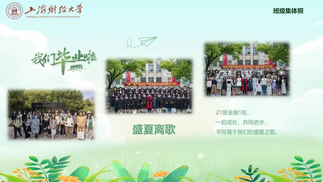 现在一起来看看2021级金融学1班的毕业风采展示吧!ps.搭配BGM观看体验更佳哦~