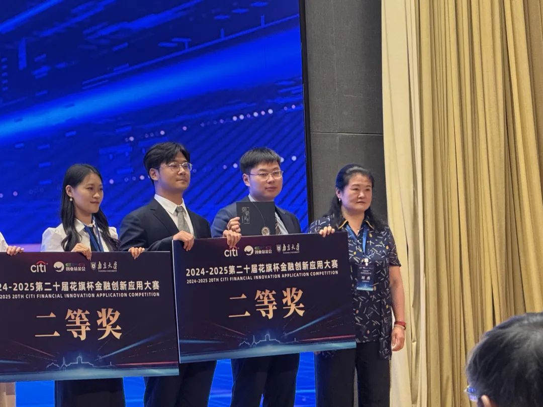 2025年第二十届“花旗杯”金融创新应用大赛由南京大学承办,经过长达一年的辛苦备赛,由上海财经大学金融科学实验中心、教育部哲学社会科学创新团队(金融安全与安全治理)副主任闵敏老师带队指导的作品“Sufe@LLM——模型微调平台”成功闯入决赛,最终获得二等奖(全国十强)的佳绩!金融学院本科生史弋飞(队长)、计算机与人工智能学院硕士研究生潘亚彬、信息管理与工程学院硕士研究生蔡倩洁、信息管理与工程学院博士研究生周晓峰等参与了6月27日至6月28日的现场答辩,信息管理与工程学院党委副书记周燕老师作为赛事理事会成员学校代表受邀上台为获奖同学颁奖。