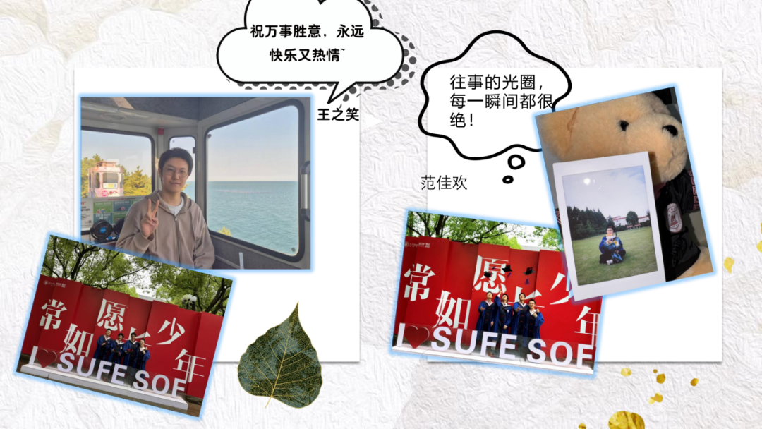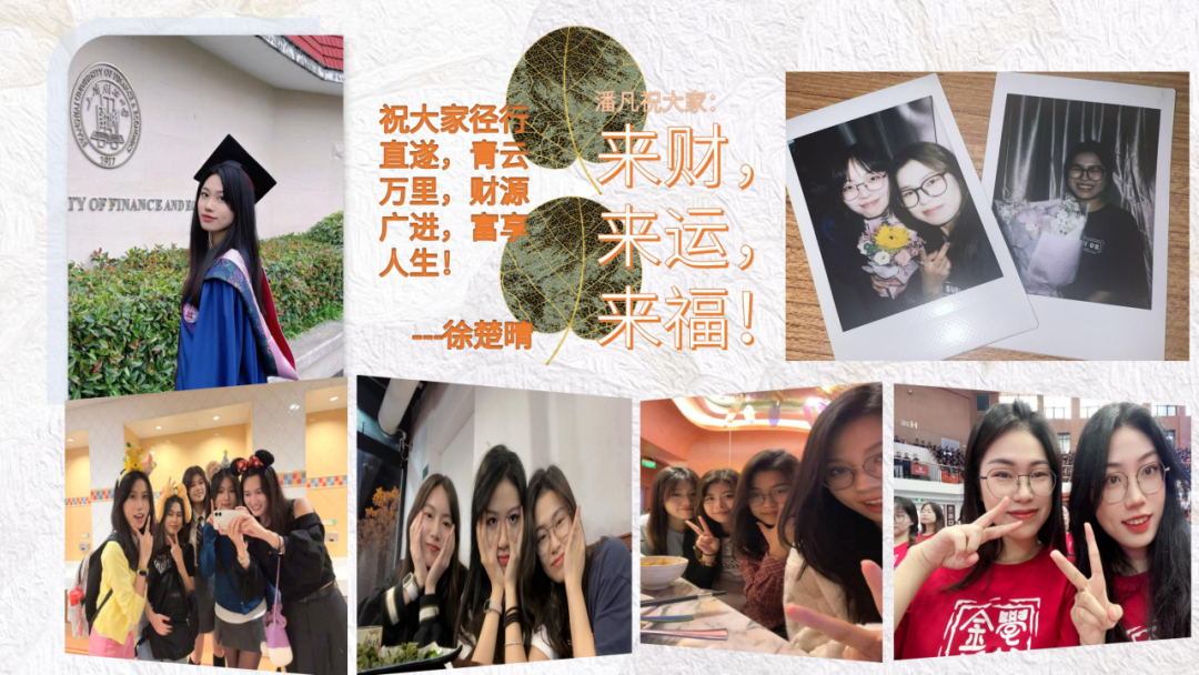 锦瑟年华灵毓秀,不负韶光不负己。祝愿2025届金融学子在强国追梦的新时代里,在未来无限的人生舞台上,继承和发扬“厚德博学,经济匡时”的校训精神,展现上财金融人的情怀和担当,以新时代追梦人的姿态和干劲,坚守理想初心,矢志砥砺奋斗,让青春在拼搏中熠熠发光,奋力书写为中国式现代化挺膺担当的青春篇章!祝福大家前程似锦,未来可期!
