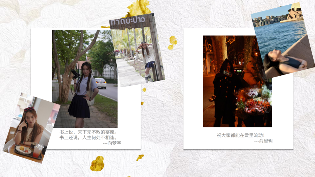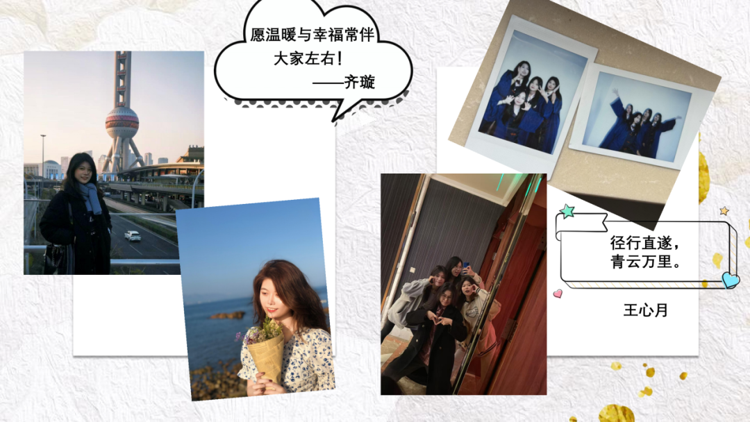 “愿我们毕业后的每一步,都能踏在希望的道路上,彼此的祝福如同微光,照亮未来的旅程。”