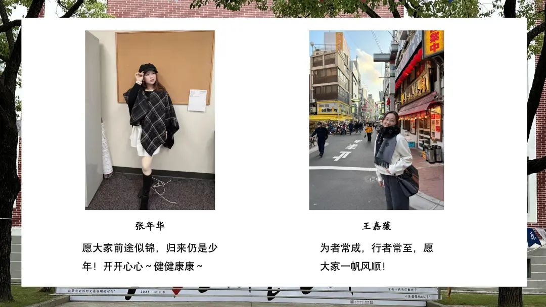 “愿大家前途似锦,归来仍是少年!开开心心~健健康康~”