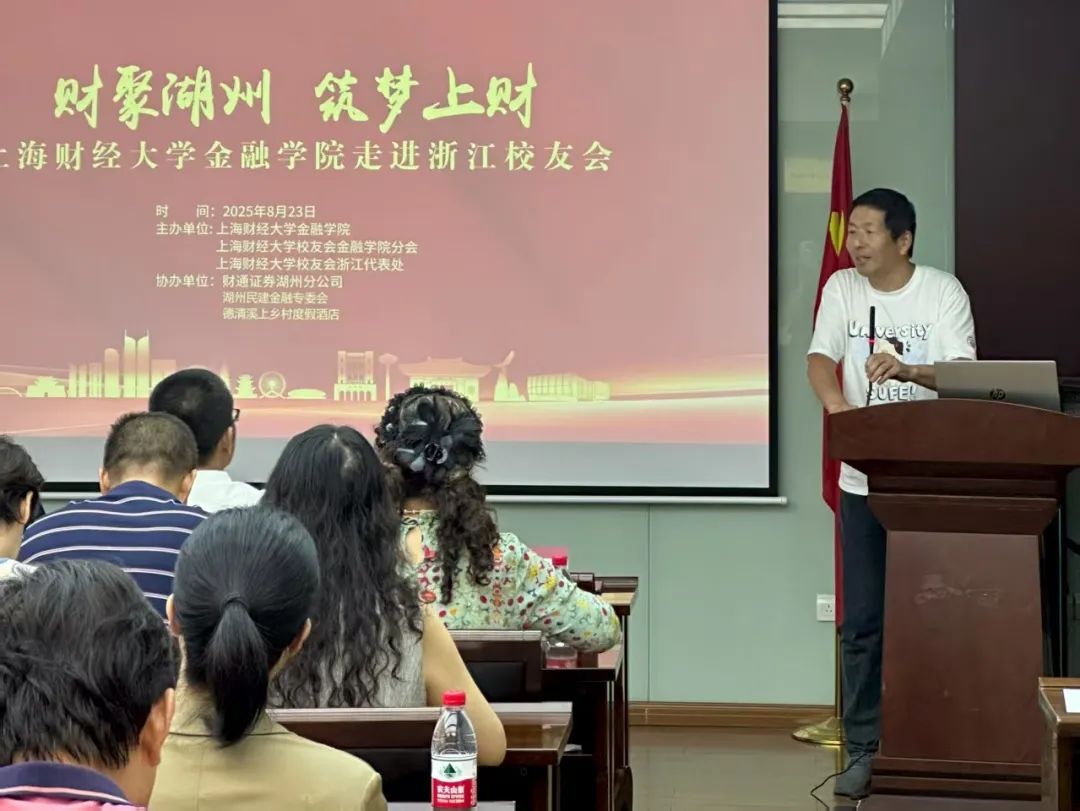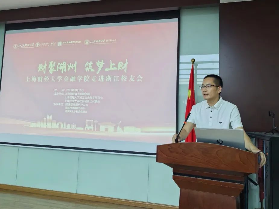 财聚湖州 智汇上财——上海财经大学金融学院走进浙江校友会活动凝聚了上财师生校友,以及来自湖州本地的企业家、金融从业者和高校学者。虽然来自不同的领域和背景,却因同一个约定而相聚于此。此次活动由上财金融学院、金融学院校友会和上财校友会浙江代表处共同策划,得到上财校友会浙江代表处边春霄副会长的精心筹备与会场安排,为这场相聚奠定了温暖而周到的基调。