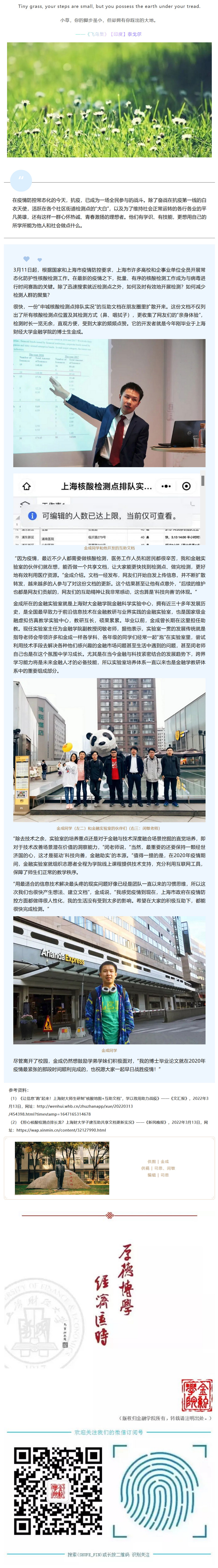 “科技向善,互助抗疫” | 记“申城核酸检测点排队实况”互助文档开发者、我院2022届博士毕业生金成