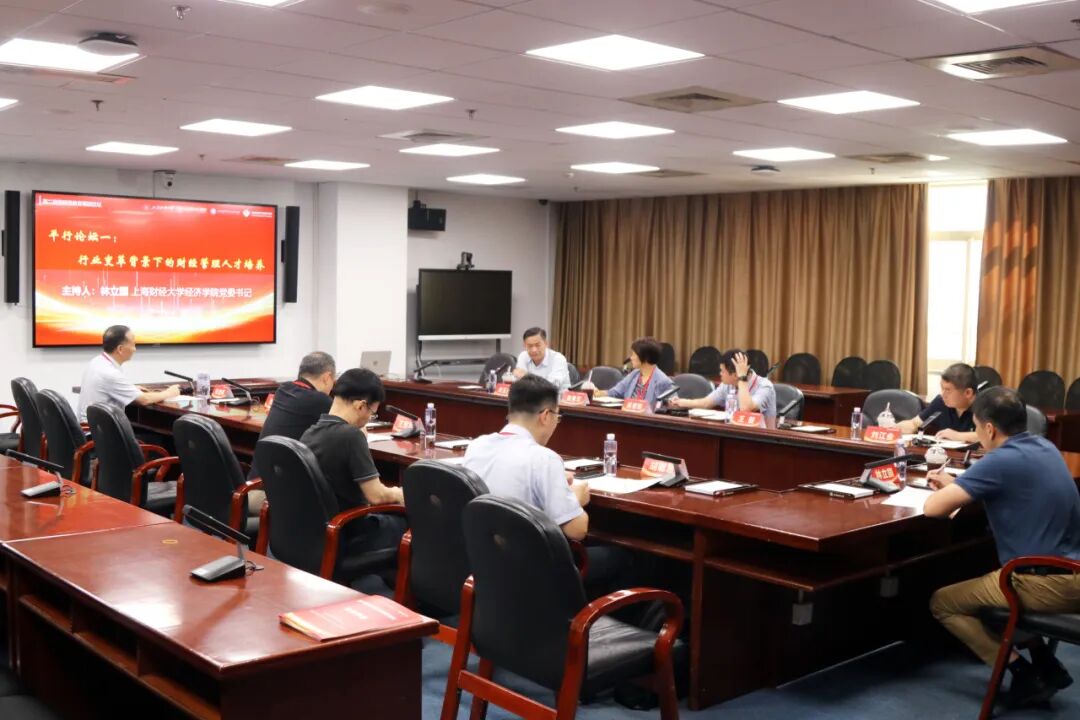 “行业变革背景下的财经管理人才培养”平行论坛由上海财经大学经济学院党委书记林立国主持。北京师范大学经济与工商管理学院副院长胡聪慧、上海师范大学商学院院长刘江会、同济大学经济与管理学院党委副书记阮青松、天津财经大学统计学院党委书记王健、中南大学商学院院长王宗润、厦门大学管理学院副院长吴育辉、上海财经大学资深教授徐龙炳、华东师范大学经济学院院长殷德生、华中农业大学经济管理学院党委副书记张进,新华社上海证券报投教中心主任、《上证投资家》主编张勇军,上海外国语大学国际金融贸易学院党委书记、院务委员会主任章玉贵等嘉宾参与讨论。