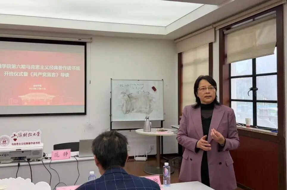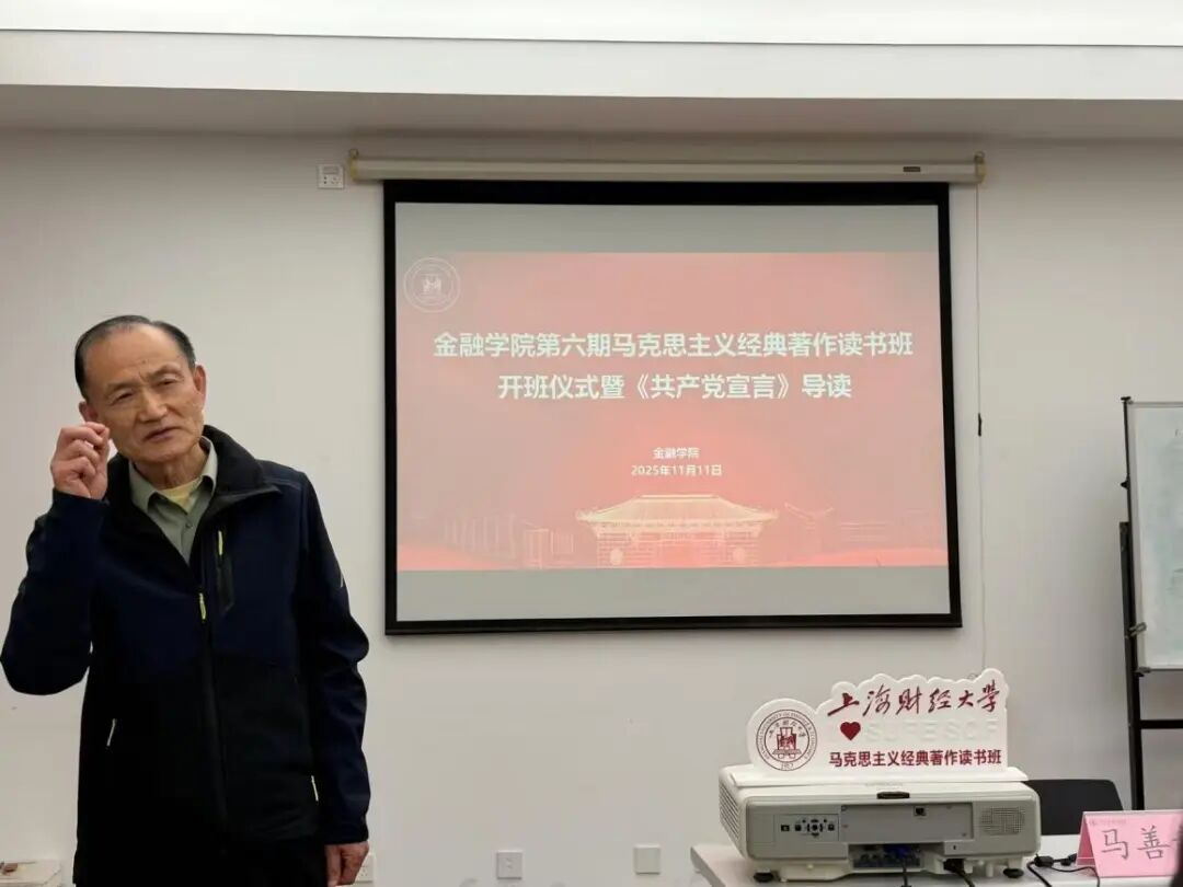 2025年11月11日下午,金融学院第六期马克思主义经典著作读书班开班仪式在武东路校区毓秀楼举行,人文学院教授范宝舟、校关工委秘书长李红梅、金融学院党委书记朱小能、校关工委原常务副会长毛荣生、学校特邀党建组织员范静和特邀党建组织员、离退休处第三党支部书记马善新出席;金融学院预备党员和发展对象近50名学员参加。活动由金融学院党委专职组织员李书华主持。