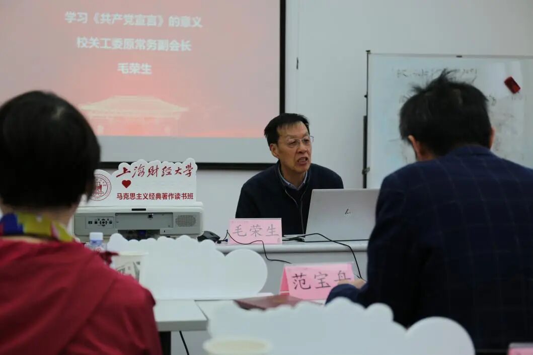 校关工委原常务副会长毛荣生老师随后系统阐释了《共产党宣言》的深邃内涵与时代意义。他指出,这部著作出版标志着马克思主义的诞生,为世界无产阶级革命运动提供了锐利理论武器。毛荣生老师带领大家回顾了《共产党宣言》提出的“至今一切社会的历史都是阶级斗争的历史”这一经典论断,讲解了运用阶级分析方法观察剖析复杂社会历史现象的路径。他进一步解读了著作核心阐释的科学社会主义原理,强调这些原理不仅具有重要理论价值,更对国际工人运动和民族民主解放运动、对中国革命、建设、改革开放,都具有根本的实践指导意义。毛老师强调:《共产党宣言》以无可辩驳的逻辑力量、特别是经受了历史检验证明,深刻揭示了人类社会发展的必然规律——“资产阶级的灭亡和无产阶级的胜利是同样不可避免的”。
