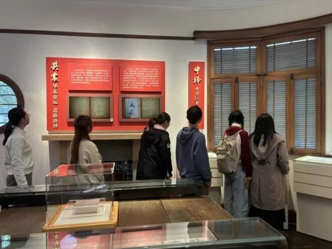 参观过程中,发展对象们始终保持肃穆神情,在泛黄手稿间追溯思想源流,于磨损典籍中触摸历史脉搏。在三楼手札室,陈望道先生的亲笔手札字迹工整有力,字里行间满是对学术的严谨追求与对国家教育事业的深切关怀。陈望道先生用毕生践行“不忘初心”的誓言,他翻译的不仅是一部著作,更是照亮中国革命征程的思想火炬。大家纷纷表示,这种沉浸式学习让党史从“课本上的文字”变成了“可触摸的历史”,比单纯的理论学习更具感染力。
