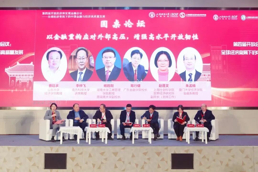 在“以金融重构应对外部高压,增强高水平开放韧性”圆桌论坛环节,山东大学经济学院教授曹廷求、南方科技大学讲席教授李仲飞、湖南大学工商管理学院教授(原湖南大学副校长)杨胜刚、广东金融学院校长易行健、上海社会科学院世界经济研究所副所长(主持工作)赵蓓文、厦门大学经济学院金融系教授朱孟楠六位专家围绕外部环境变化下的金融开放策略、产业链供应链金融支持等议题,聚焦中国金融体系的短板与改革方向展开讨论,为中国在高水平开放中筑牢发展韧性提供了多元思路。