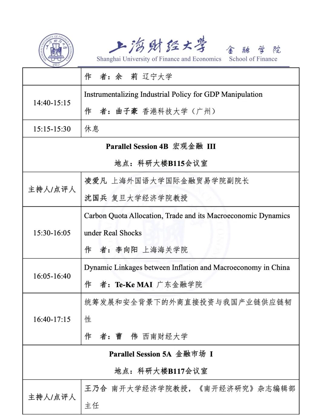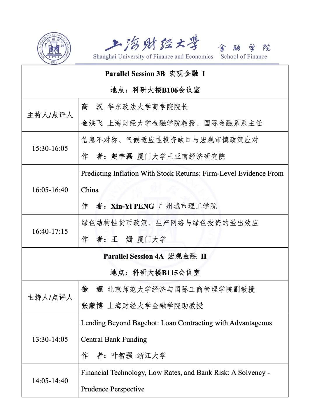 Parallel Session 4A 宏观金融 II | 科研大楼 B115 会议室 |