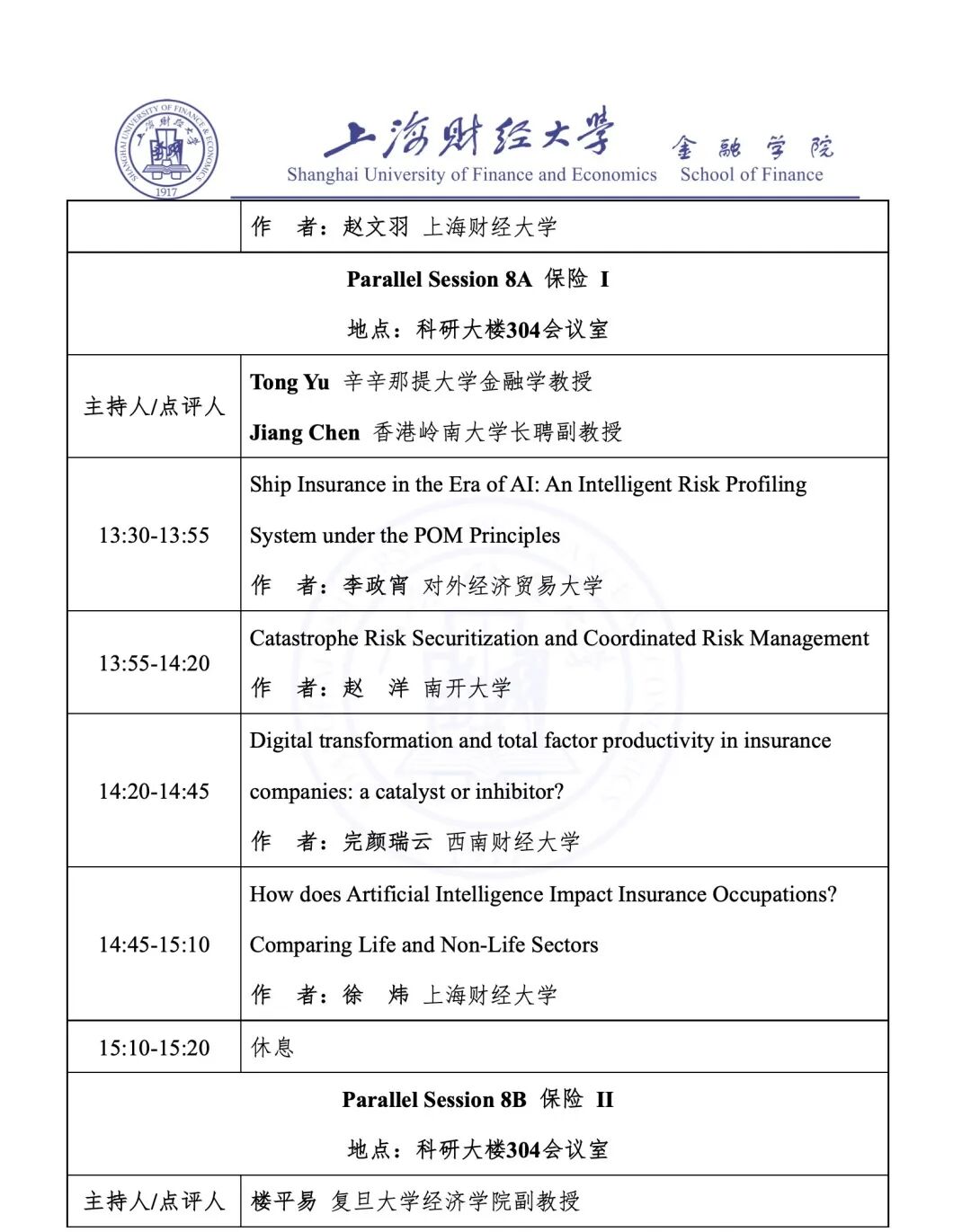 Parallel Session 8B 保险 II | |