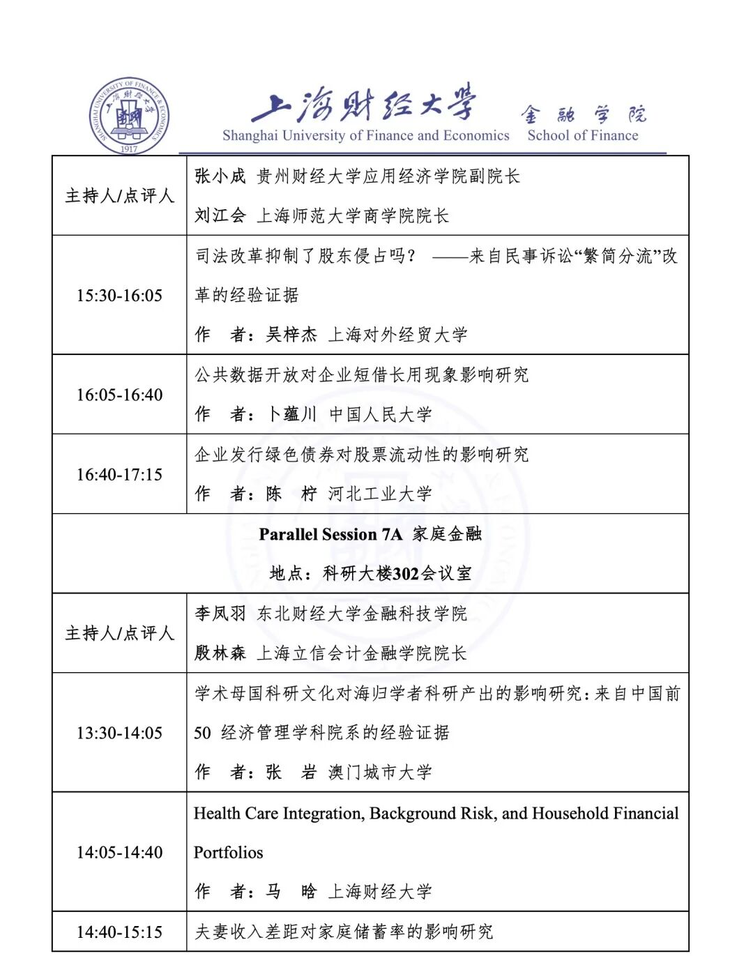 Parallel Session 7A 家庭金融 | 科研大楼 302 会议室 |