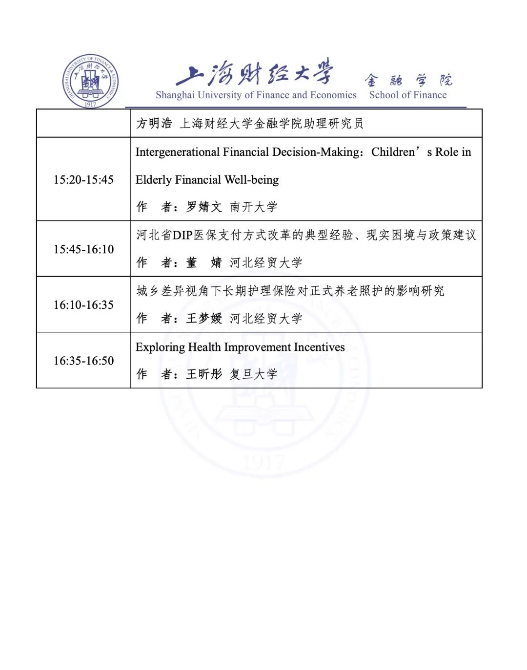 08:30-08:40 | 校领导致欢迎词 刘莉亚 上海财经大学副校长 |