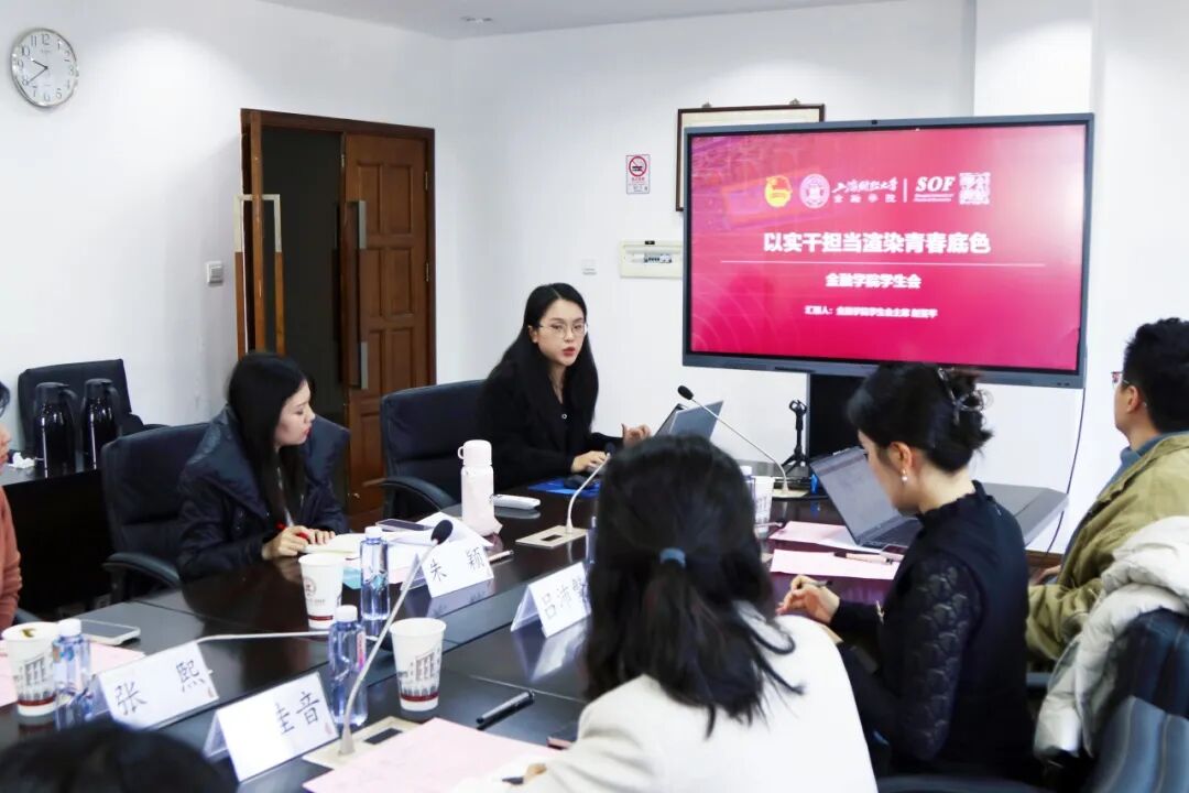 上财金融学院辅导员、分团委书记吴明星从学院团委工作角度,介绍了学院团委“思想引导—组织建设—成长平台”三大板块的工作布局,他表示金融学院团委连续多年获评“五四红旗团委”,充分体现了团组织的工作成效。紧接着,上财金融学院学生会主席赵雯芊介绍了学生会的工作与品牌建设情况,她表示学生会紧紧围绕“服务育人、文化建设、组织锻造”三大主线开展工作,努力做到为同学服务,并取得良好成效。