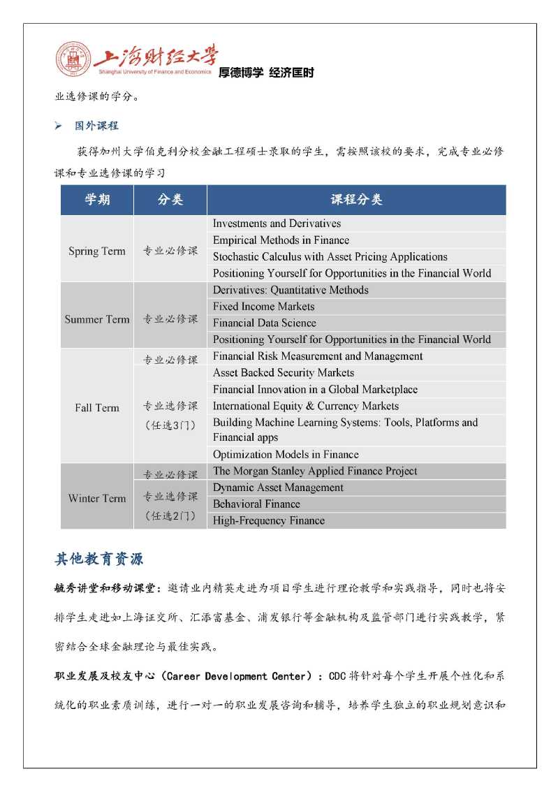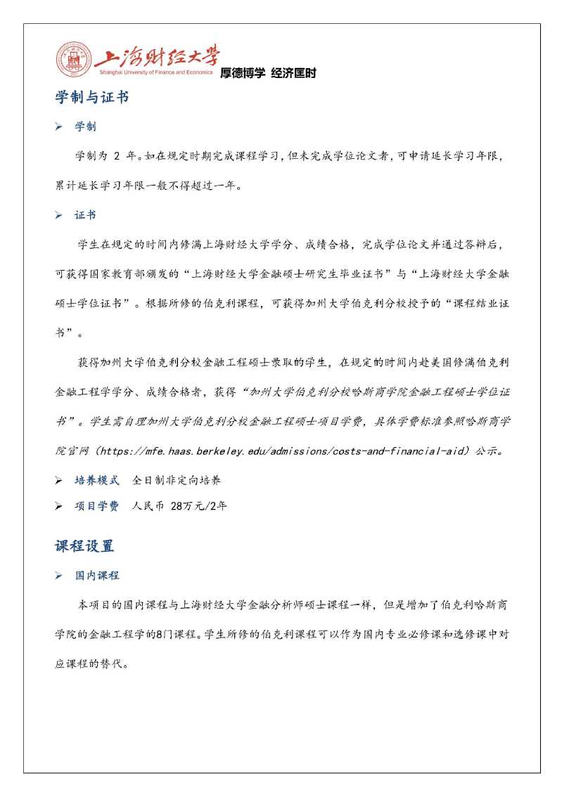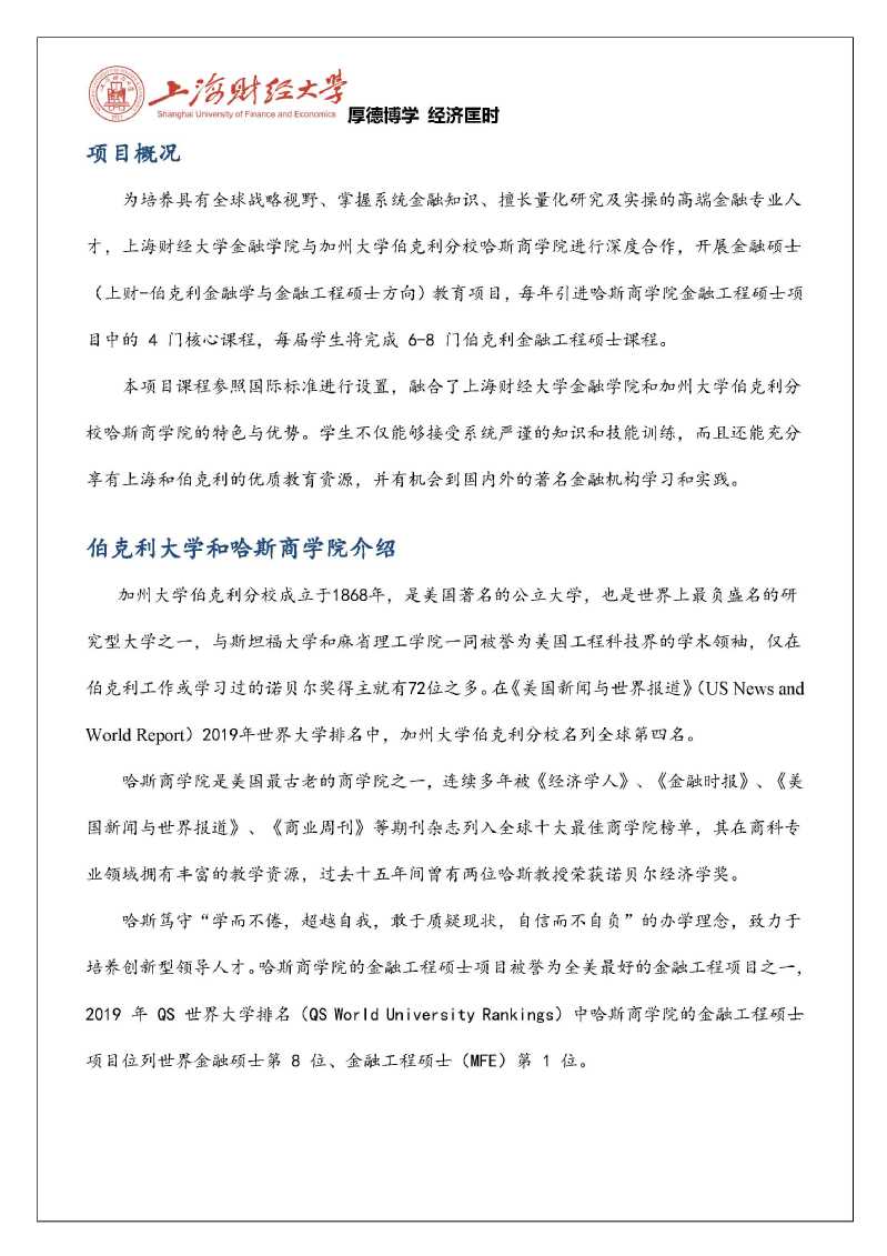 2020年上财-伯克利金融学与金融工程硕士招生简章