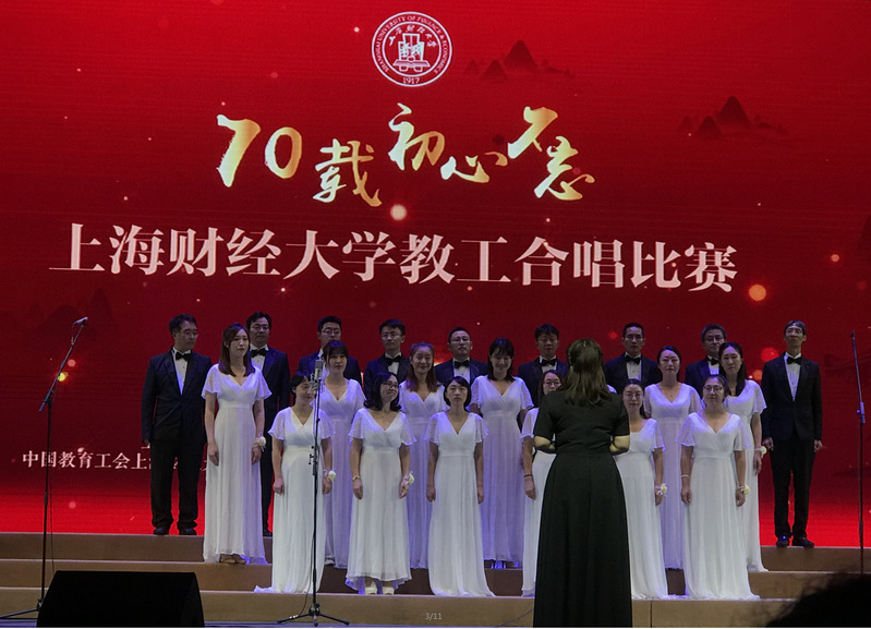 本次赛事由中国教育工会上海财经大学委员会主办,共青团上海财经大学委员会协办,共有来自全校十七个院所及部门的教职工代表队参加。比赛中,十七支队伍的精彩合唱,加上最后动人的舞蹈表演和感人至深的诗歌朗诵,让在场师生在陶冶情操的同时,也感怀了新中国70年来走过的流金岁月。