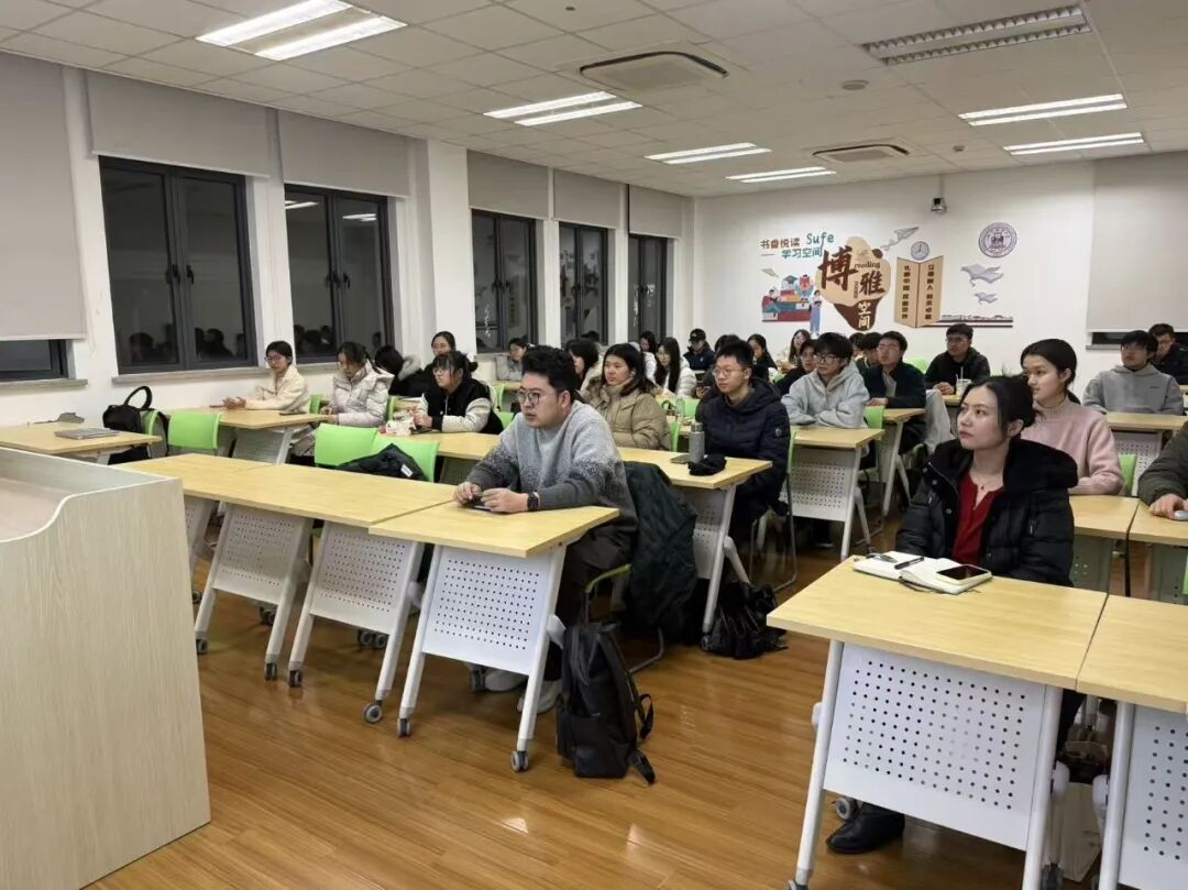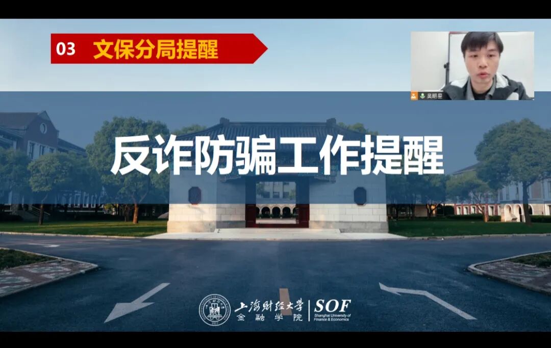 会议首先由文保分局单警官开展反诈安全教育,单警官通过真实警情案例和数据分析,以及生动形象的受骗学生心理分析,深度剖解了“刷单返利”“裸聊诈骗”“冒充客服”“冒充公检法”等大学生常见诈骗套路,此外,单警官还特别提醒同学们无人机黑飞的重大危害,着重提醒同学们遵纪守法筑牢安全防线,反诈防骗时时放心间。随后,优秀校友仝锡闻以自身为生动案例,从留学准备、留学申请优势、留学申请时间线以及留学案例分析等多方面为同学们立体呈现了整个出国留学路径。会议第三环节由马老师主讲,围绕学业规范与诚信教育、生涯发展规划与日常咨询服务两大核心内容展开。模块开篇马老师首先引用习近平总书记对当代青年的重要寄语:“当代中国青年是与新时代同向同行、共同前进的一代,生逢盛世,肩负重任”,强调大学生的深沉使命。随后,讲解过程中马老师采用正反结合的教育方式:一方面选取近年本校真实发生的学业作弊、学术不端、违反校纪等典型案例,现场展示相关处分通知单开展警示教育,清晰划定校纪校规的刚性红线;另一方面集中表彰本学期涌现的优秀学生代表,分享其在学业攻坚、第二课堂、志愿服务、社会实践等领域的先进事迹,充分发挥榜样的正向示范作用,引导学生既明确行为底线,又树立成长标杆。
