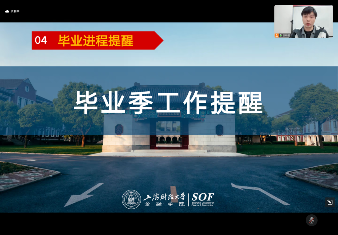 3月16日,金融学院召开2026届本科毕业生年级大会,会议由毕业班辅导员吴明星老师主持,邀请学院教务办公室周洁琼老师、职业发展中心刘丹丹老师等,围绕毕业教务、就业指导、安全教育及毕业季活动安排等方面详细介绍,全体2026届本科毕业生在线参会。