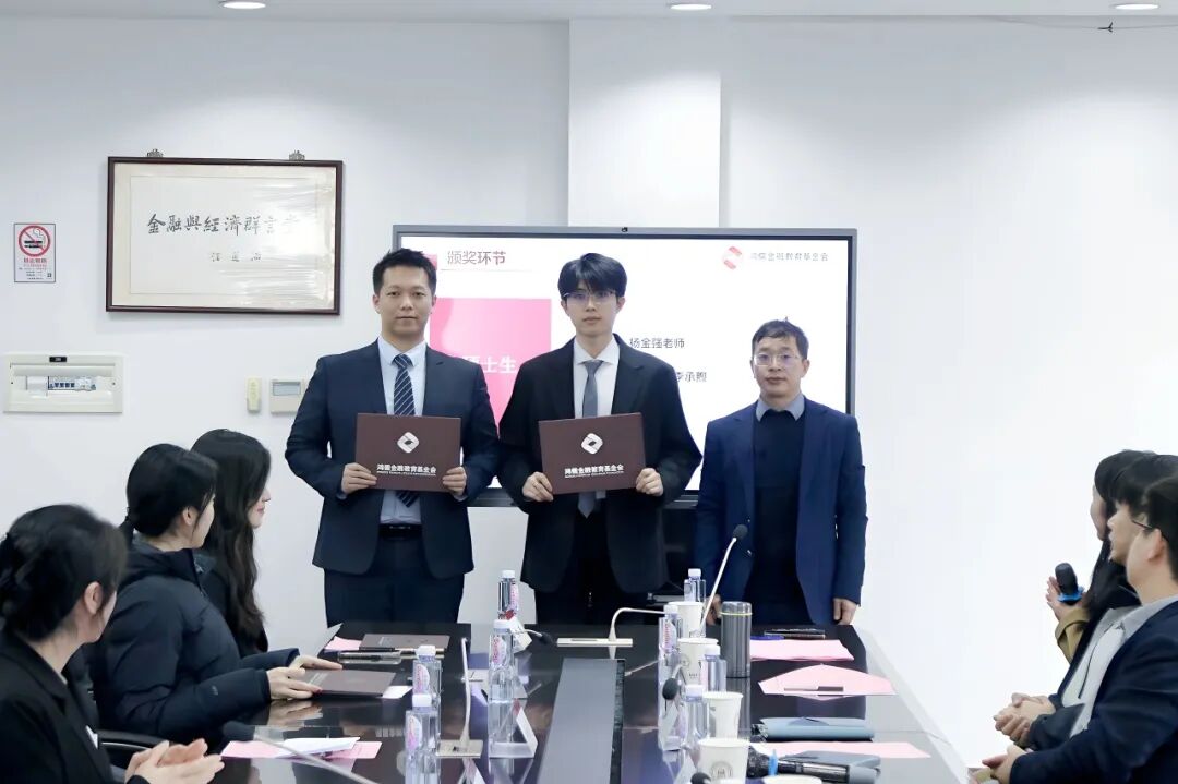 2026年3月24日下午,2025年度“鸿儒奖学金”颁奖仪式暨师生座谈会在上海财经大学金融学院同德楼隆重举行。本次活动是学院与鸿儒金融教育基金会首次合作设立该奖学金后的颁奖仪式,具有重要意义。金融学院院长杨金强教授、鸿儒金融教育基金会副秘书长段玉平老师、金融学院党委副书记刘冲老师、金融学院学生工作办公室主任张熙老师等出席仪式,与全体获奖学生共同见证这一荣誉时刻。仪式由金融学院辅导员王梦圆主持。