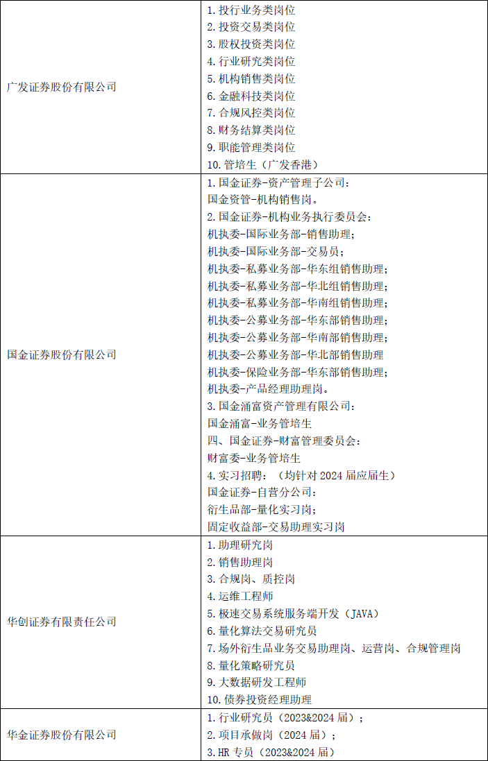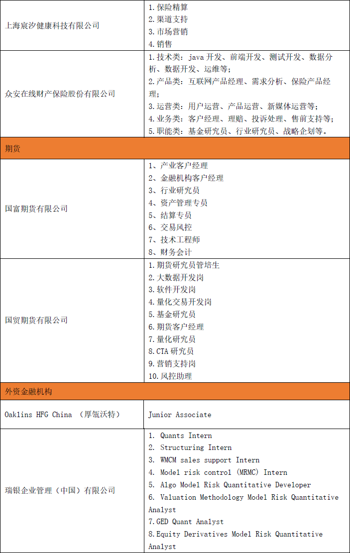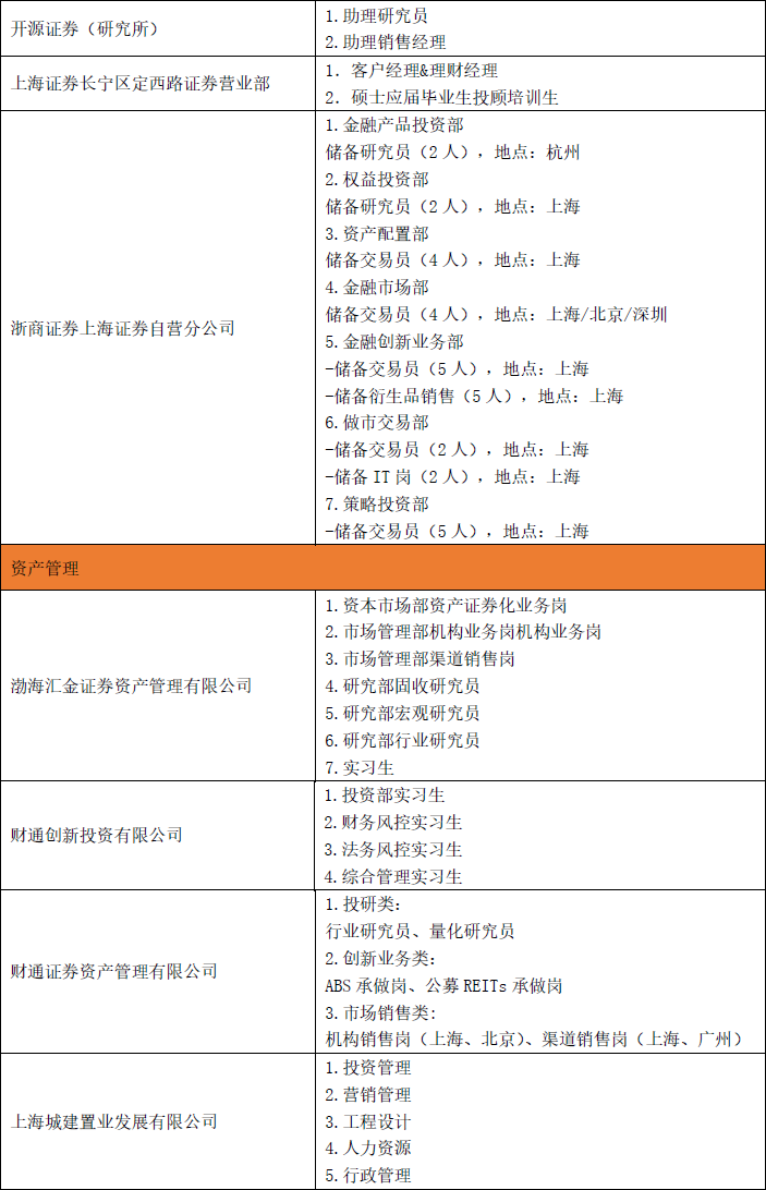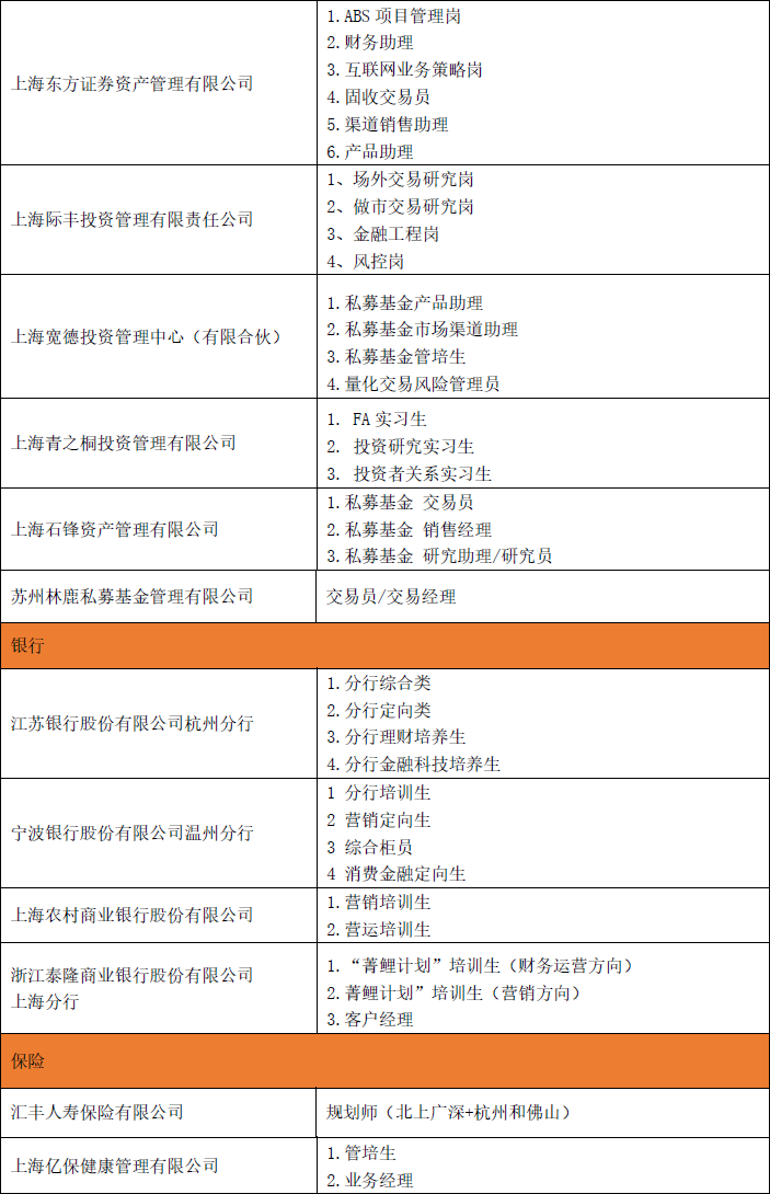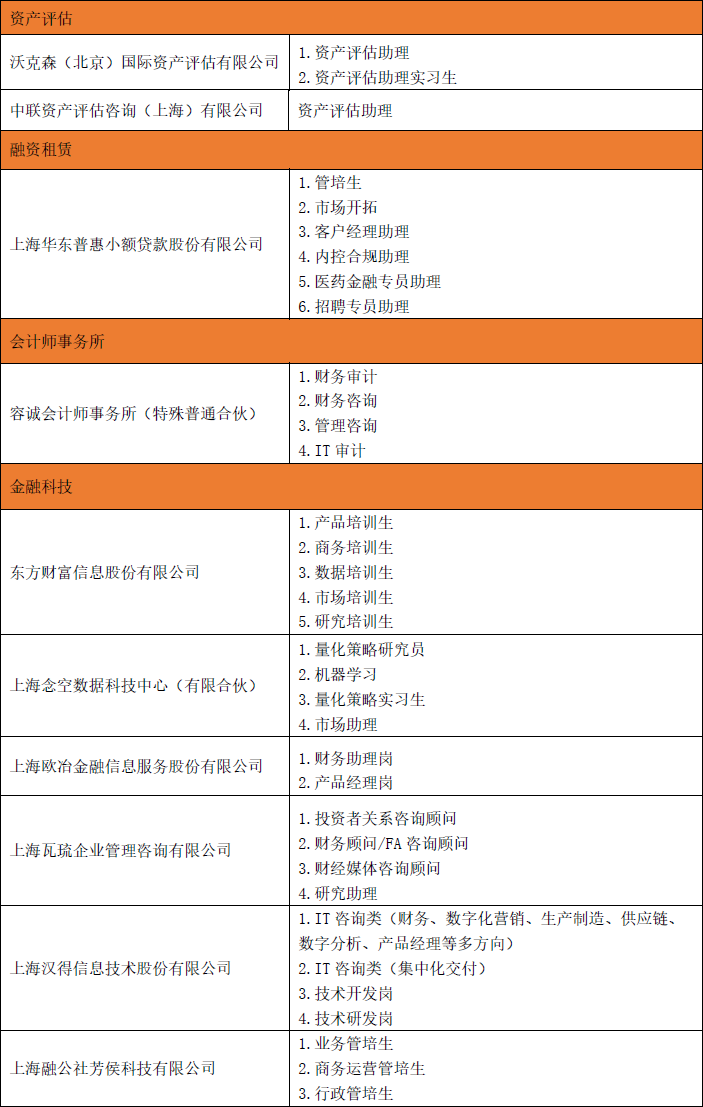 上海财经大学2023年金融企业专场校园招聘会岗位列表