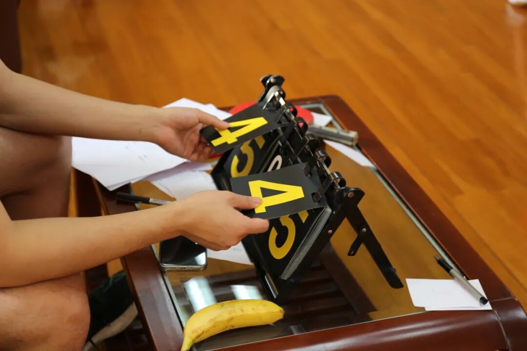 在学生男单环节,黄禹力、张贺、孟响三位同学活力四射、敢打敢拼,用青春的锐气点燃了整个赛场,两场比赛都充满了青春的热血与韧劲。第一场男单孟响对阵张贺,双方冲劲十足、节奏飞快,比分交替上升,多次出现平分局面,最终张贺选手凭借更稳定的发挥,以大比分2:0获胜。第二场黄禹力对阵张贺,双方敢打敢拼,黄禹力即便落后3分,也始终没有放弃,凭借顽强的韧劲连续追分,从7:10追至10:10平,最终以12:10逆转,并以2:1大比分取胜,用拼搏诠释了青春的力量。