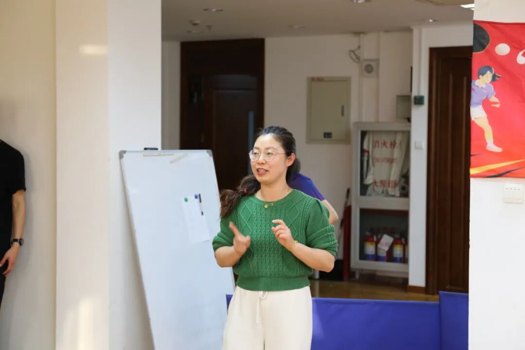 第二场混双,章伏泉和王绚老师对战徐翰韬和易雯老师。王绚老师组配合默契,一直处于上风,保持比分领先,最终两局比赛王绚老师组都以11:9的比分赢下比赛。