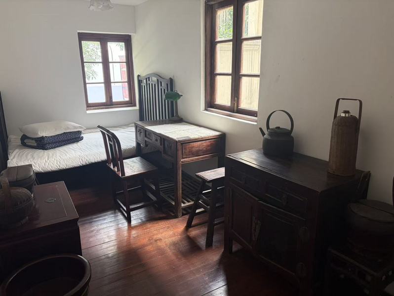 活动第一站,组员们来到位于安义路63号的1920年毛泽东寓所旧址。这幢坐南朝北的砖木结构两层小楼,掩映在繁华商业区之中,1920年5月至7月,毛泽东作为“驱张”代表团成员在此居住近两个月,这一时期成为他确立马克思主义信仰的关键转折点。